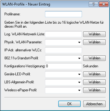 Für jedes WLAN-Profil können Sie unter die folgenden Parameter definieren: