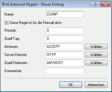 Wenn IPv6 verwendet wird, muss in der IPv6-Firewall unter zusätzlich der Zugriff auf den entsprechenden Port erlaubt werden.