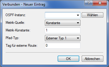 - Die OSPF-Metrik wird gebildet aus der Redistribution-Metrik bzw. Metrik-Konstanten.