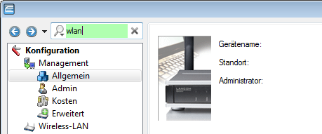 Der Konfigurationsbaum im linken Bereich von LANconfig ist nun reduziert auf alle Bereiche an, in denen der Suchbegriff enthalten ist: