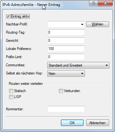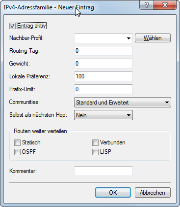 Bei Auswahl der Option LISP verteilt das Gerät LISP-Routen aus der