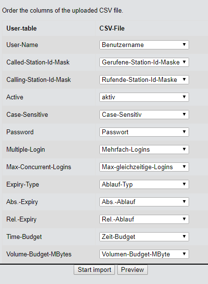To import the user data of the RADIUS server via WEBconfig, proceed as follows.
