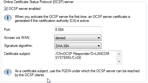 If you now use Smart Certificate in WEBconfig to generate a certificate , the OCSP AIA is automatically added to it, so enabling the client to contact the OCSP server for a validity check during connection establishment.