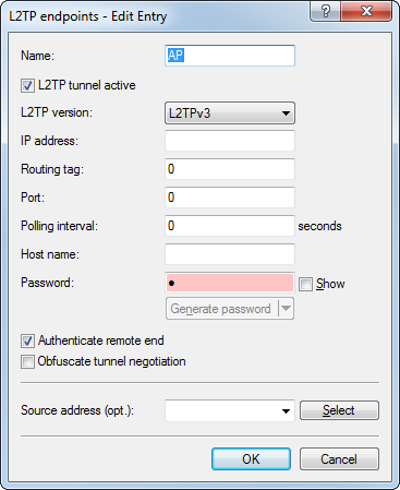 This is an example of how L2TPv3 is used in a scenario where several access points use bridging to transfer their payload data to a central router (referred to here as the "concentrator"), where the data are made available via a separate Ethernet port.