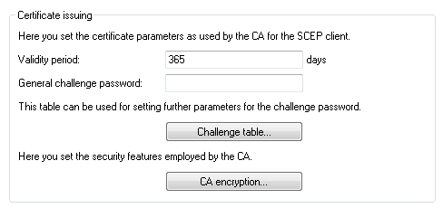 - An additional "Password" can be entered here, which is transmitted to the CA. This can be used by default to authenticate revocation requests. If CAs operate Microsoft-SCEP (mscep), the one-time passwords issued by the CA can be entered here for the authentication of requests.