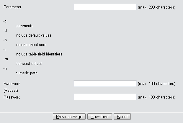 By default, all options are disabled. A click on Download invokes the dialog for downloading an unencrypted script file without a checksum.