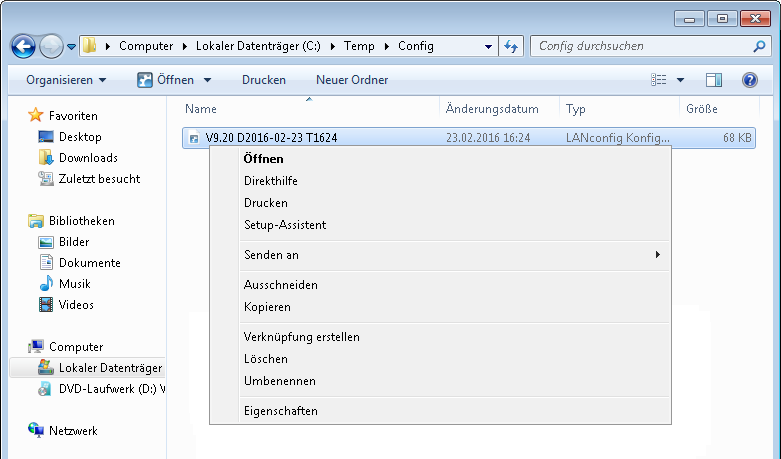Ab LCOS-Version 9.20 zeigt der Windows-Explorer für *.LCS-Dateien ein entsprechendes Icon an. Über den Kontextdialog oder über einen Doppelklick auf die Datei öffnet sich die LANconfig-Direkthilfe.