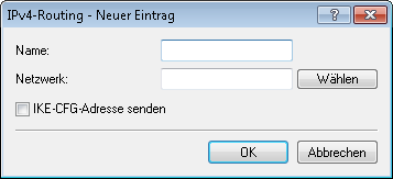 - Als Client sendet das Gerät die erhaltene CFG-Mode-Adresse an den VPN-Peer (Server).Anmerkung: Diese Option ist nur dann erforderlich, falls die Gegenseite keinen automatischen Routing-Eintrag für zugewiesene IP-Adressen erzeugt. LANCOM Router erzeugen die notwendigen Routen automatisch.