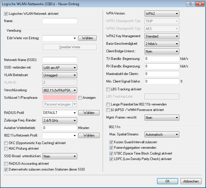 Anmerkung: Diese Option konfiguriert das Tracking aller Clients einer SSID. Im Public Spot-Modul bestimmen Sie, ob der LBS-Server die am Public Spot angemeldeten Benutzer tracken darf.