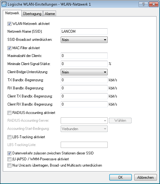 Wechseln Sie in LANconfig zu der Ansicht . Aktivieren Sie anschließend unter dem Reiter "Netzwerk" die Checkbox RADIUS-Accounting aktiviert.