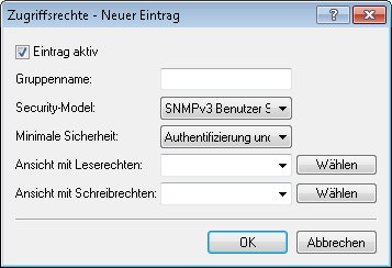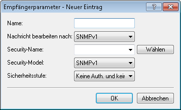 - Wählen Sie hier einen Security-Namen aus, den Sie einer SNMP-Community zugeordnet haben. Auch die Angabe des Namens eines bereits konfigurierten Benutzers ist möglich.