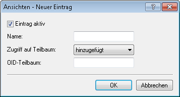 - Bestimmen Sie, ob die nachfolgend angegebenen OID-Teilbäume Bestandteil ("hinzugefügt") oder kein Bestandteil ("entfernt") der Ansicht sind.