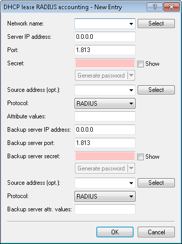 The input box Accounting interim interval configures the interval for the RADIUS interim updates. You configure the RADIUS accounting server and the corresponding backup server by clicking on DHCP lease RADIUS accounting.