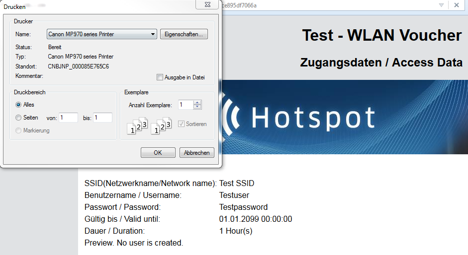 This page contains test data. However, no user is created at this point. This allows you to test the template and print it out.