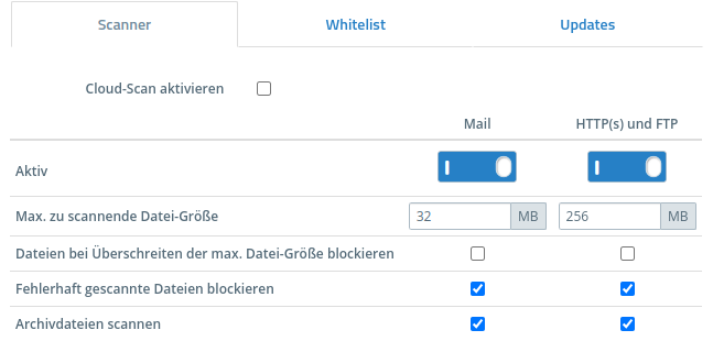 Außerdem ist die Option Archivdateien scannen nun getrennt für Mail bzw. HTTP(s) und FTP einstellbar.