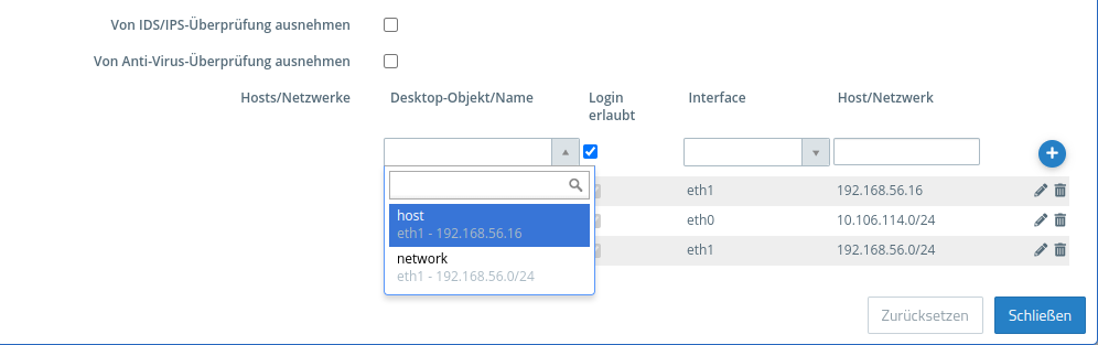Bei Hosts / Netzwerke wählen Sie nun alternativ unter