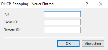 - Hier kann der WLAN-Netzwerkname oder ein LAN-Port (je nach Gerätemodell ETHx oder LANx) konfiguriert werden, auf dem DHCP-Requests ergänzt werden sollen.