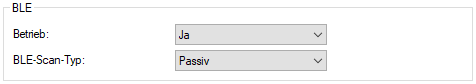 - Wählen Sie hier zwischen einem passiven und aktiven Scan. Der BLE-Name sowie eine Scan-Response kann nur im aktiven Scan erhoben werden. Beachten Sie, dass BLE-Clients ggf. durch das Beantworten der Scan-Anfragen erhöhten Stromverbrauch zeigen können.