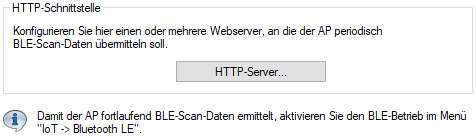 Mittels der HTTP-Schnittstelle können Access Points LBS-Daten direkt an einen frei konfigurierbaren HTTP-Endpunkt senden. Da die Daten im JSON-Format vorliegen, wird eine einfache Verarbeitung auf der Empfängerseite sichergestellt.