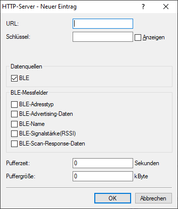- Nachdem die konfigurierte Zeit (in Sekunden) erreicht ist, werden alle bis dahin gepufferten BLE-Nachrichten an den Server gesendet.