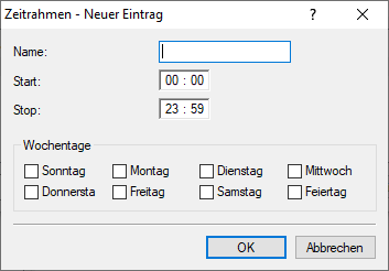 Hier können Sie die Wochentage auswählen, an denen der Zeitrahmen gültig sein soll.