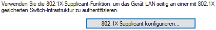 Hier finden Sie die Einstellungen für die 802.1X-Supplicant-Funktionalität, um das Gerät LAN-seitig an einer mit 802.1X gesicherten Switch-Infrastruktur zu authentifizieren. Diese sind unter .