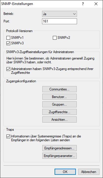 - Administratoren haben SNMPv3-Zugang entsprechend ihrer Zugriffsrechte