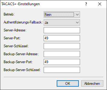 Die TACACS+-Einstellungen des Gerätes finden Sie unter .