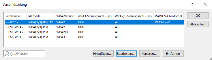 Standardmäßig sind folgende Verschlüsselungsprofile hinterlegt und können in der Konfiguration der WLAN-Netzwerke verwendet werden: