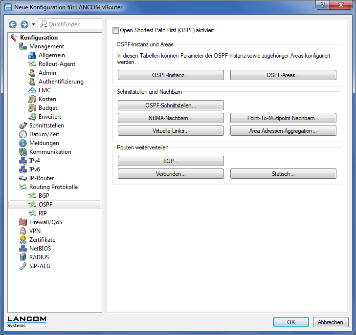 Um OSPF mit LANconfig zu konfigurieren, wechseln Sie in die Ansicht .