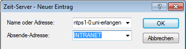 - Name oder AdresseName oder IP-Adresse des NTP-Servers. Der Router versucht die Server in der Reihenfolge der Einträge zu erreichen.