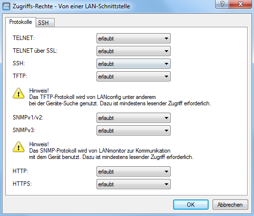 Dabei ist es möglich, den Konfigurationszugriff generell zu erlauben oder zu verbieten, als reinen Lesezugriff oder - falls Ihr Modell mit VPN ausgerüstet ist - auch nur über VPN zu erlauben.