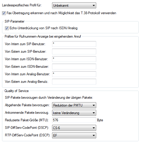 Anmerkung: Die Verwendung von 'CS-1' für SIP-DSCP ist heute überholt und zur Erhaltung der Abwärts-Kompatibilität als Default gesetzt. Typische Werte für aktuellen VoIP-Installationen sind 'CS-3', 'AF-31' oder 'AF-41'. Wegen der großen Verbreitung im Markt empfehlen wir bei SIP-DSCP den Einsatz von 'CS-3'.