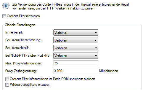 Die globalen Einstellungen des LANCOM Content Filters nehmen Sie hier vor: