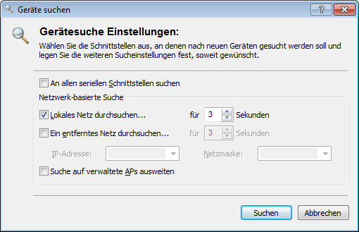- In einem entfernten Netz Wenn Sie ein entferntes Netz durchsuchen wollen, müssen Sie die Adresse des Netzwerkes und die zugehörige Netzmaske angeben.