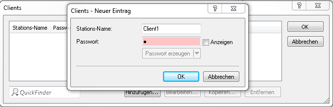 Tragen Sie einen Stationsnamen für den Client ein und definieren Sie ein Passwort, das der Client für den Zugang zum NAS benötigt.