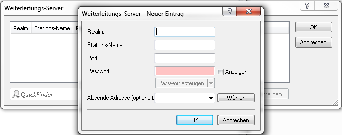 Um neue Weiterleitungs-Server für die dynamische Autorisierung hinzuzufügen, klicken Sie auf die Schaltfläche Weiterleitungs-Server und fügen Sie der Tabelle einen neuen Eintrag hinzu.