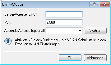 Um den Zugriff auf den RTLS-Server (ERC) mit LANconfig zu konfigurieren, öffnen Sie die Ansicht und klicken Sie auf die Schaltfläche Blink-Modus.