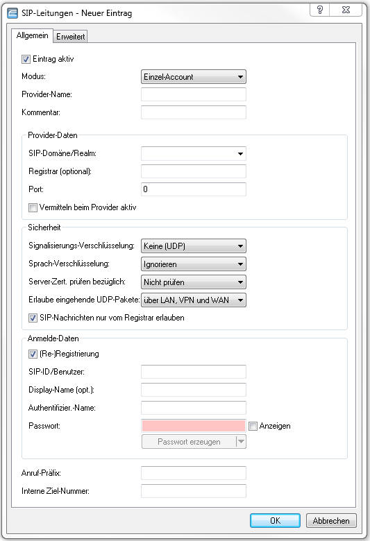- Diese Einstellung legt fest, ob und wie Sprachdaten (RTP/SRTP) bei der Kommunikation mit dem Provider verschlüsselt werden.