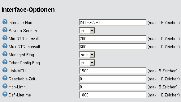 Vergeben Sie einen Namen für das Interface, das den 6to4-Tunnel verwendet, z. B. "INTRANET".