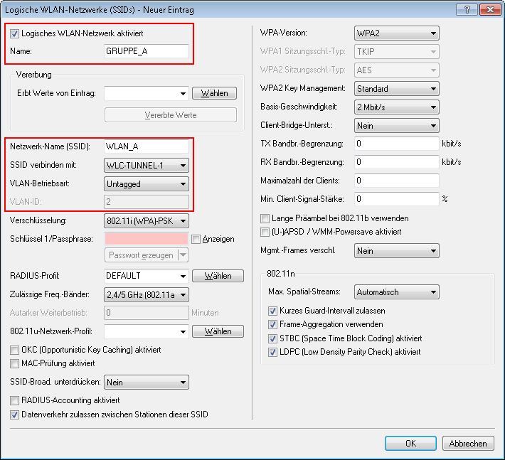 Das Ziel der Konfiguration: Ein WLAN-Client, der sich an einer bestimmten SSID anmeldet, soll Zugang zu "seinem" Server haben – unabhängig vom verwendeten AP und unabhängig vom Segment, in dem er sich gerade befindet.