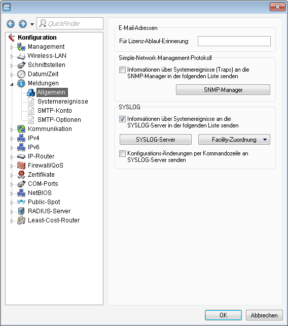 Die Parameter zur Konfiguration von SYSLOG finden Sie bei LANconfig im Konfigurationsbereich unter im Abschnitt SYSLOG.
