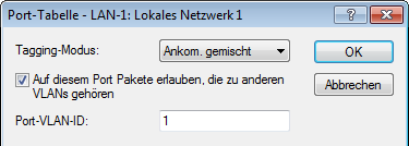 - Ankommend gemischt: Ankommende Pakete können ein VLAN-Tag haben oder nicht, ausgehende Pakete bekommen nie ein VLAN-Tag.