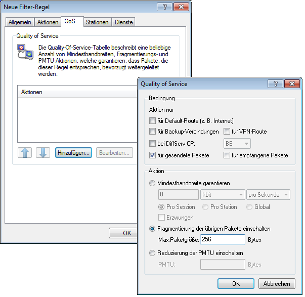 Die Längenreduzierung der Datenpakete wird im LANconfig beim Definieren der QoS-Regel festgelegt:
