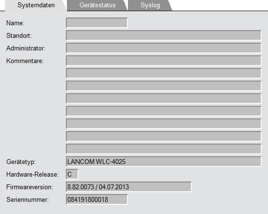 Auf der Seite der Systeminformationen finden Sie auf der Registerkarte Systemdaten allgemeine Informationen über das Gerät, den Standort, die Firmware-Version, die Seriennummer etc.