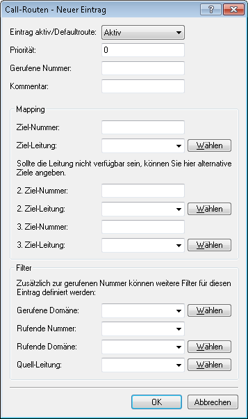 Ein Eintrag in der Call-Routing-Tabelle besteht aus: