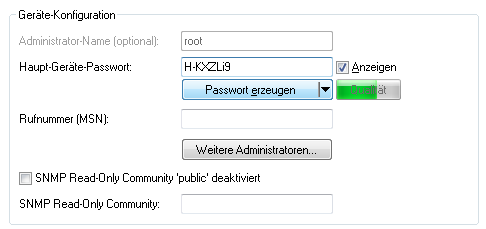 LANconfig bietet an allen Stellen der Konfiguration, welche die Eingabe eines Passworts oder einer Passphrase erfordern, die Möglichkeit zur automatischen Erzeugung eines Passwortvorschlags.