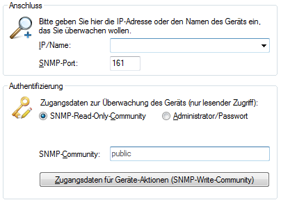 Anmerkung: Für den reinen Lesezugriff ist die Angabe einer Read-Only-Community anstelle eines Administratorkontos die bevorzugte Wahl, da SNMP-Pakete bei SNMPv2 im Klartext übertragen werden.