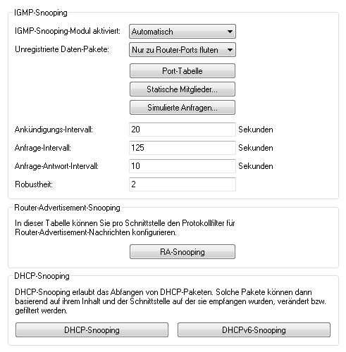 - Hier aktivieren bzw. deaktivieren Sie das DHCPv6-Snooping. Die folgende Auswahl ist möglich: