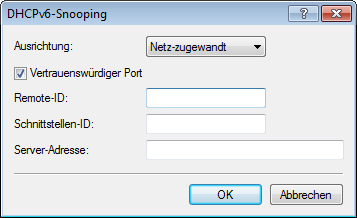 Anmerkung: Lassen Sie dieses Feld leer, wenn Sie Antworten von allen DHCPv6-Servern im Netz erhalten wollen. Ansonsten reagiert der LDRA nur auf DHCPv6-Antworten des Servers, dessen Adresse Sie angegeben haben. Antworten von anderen DHCPv6-Servern verwirft der LDRA in diesem Fall.